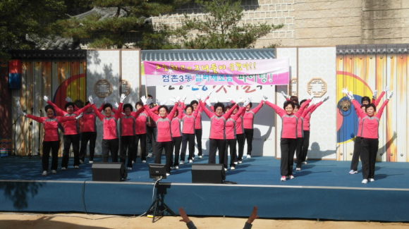 이날 행사에서는 신흥전통시장 등 상업, 체육, 교육의 중심지이자 도농복합도시‘희망의 점촌3동’소개를 시작으로 하여 사물놀이에 역동적요소를 가미한 풍물단(단장 이창분)의 사물과 난타공연으로 축제장 분위기를 한껏 돋우웠다. 이어서 실버체조팀(회장 박영자)은 흥겨운 가락에 맞추어 멋진 실버댄스를 선보여 관객들로부터 큰 호응을 이끌어 화합의 한마당을 만들어냈다.