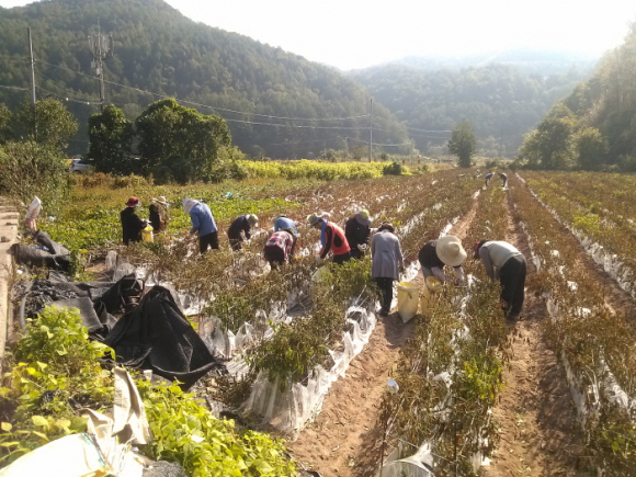직원 30여명이 참여한 이번 일손돕기는 갑작스러운 사고로 남편을 먼저 보낸 슬픔이 채 가시기도 전에 고추수확의 어려움까지 겪고 있던 청기면 기포리 안○○농가(73세)의 5,000㎡의 고추밭에서 진행되었다.
