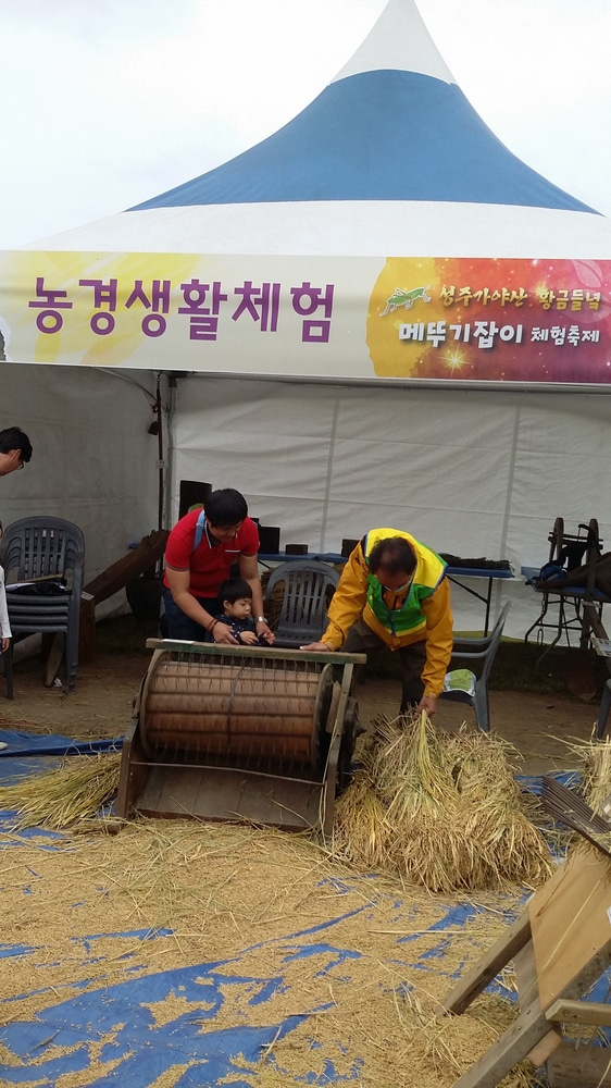 성주군 수륜면에서는 12일(일) 대가천변 생태공원일원에서 제1회 성주가야산 황금들녘 메뚜기잡이 체험축제를 성황리에 개최했다. 오늘 행사에서는 성주군 관내 주민 및 방문객 등 5,000여명이 참석하여 화합 민속놀이와 추수감사제, 메뚜기잡이, 고구마․땅콩 및 호박따기, 농경생활체험, 꽃마차여행, 볏짚공예품 만들기, 승마체험, 가훈쓰기, 농촌 1박체험 등의 프로그램과 친환경농산물인 쌀, 채소, 과수와 지역특산물인 버섯, 밤, 아로니아, 구기자 등을 전시 판매했다.