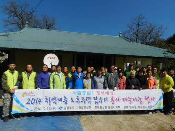 ‘집수리 재능나눔’은 경북도에서 추진하고 있는 사업의 일환으로 진행되는 것으로, 도내 취약계층을 대상으로 도에서 재료비를 부담하고 민․관 집수리 재능기부팀에서 인력을 지원해 보다 쾌적한 환경에서 지낼 수 있도록 돕는 사업으로 올해는 문경, 구미지역 독거노인, 다문화가구 등 9가구에 주거환경을 개선하여 따뜻하고 안전한 거주여건을 마련해줄 예정이다.