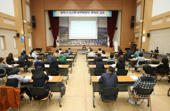 교육은 한국지역정보개발원 청백-e확산사업단 차장 서재호의 강의로 청백e시스템의 주요기능 설명, 사용요령, 사전 경보발령 결과에 대한 조치요령 등을 설명하는 순서로 진행됐다.