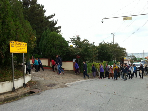 포항시가 22일 흥해읍 죽천지구와 동해면 입암지구, 구룡포 삼정지구 일원에서 지진해일에 대비한 실제 대피훈련을 동시에 실시했다.