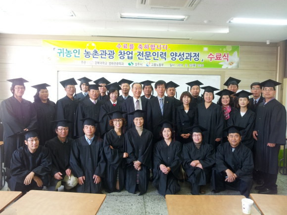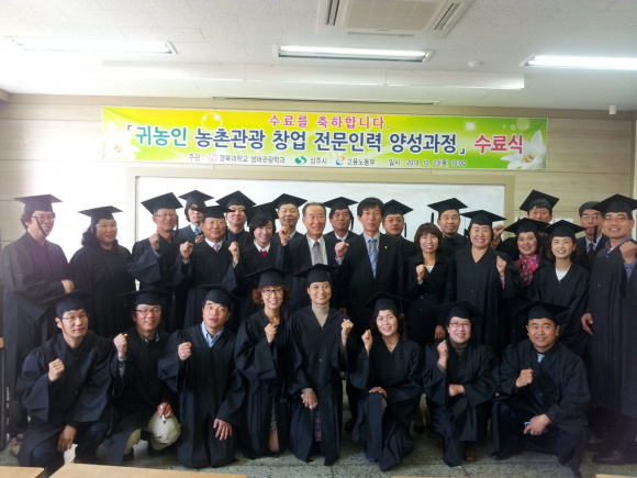 상주시와 경북대학교 산학협력단 분단에서는 23일 경북대학교 상주캠퍼스 본관에서 귀농인 농촌관광 창업 전문인력 양성교육 과정을 수료한 30명에게 수료증을 전달했다.