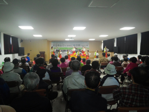 |  | | | ⓒ GBN 경북방송 | | 영덕군(군수 이희진) 달산면에서는 지난 25일(토) 농어촌희망재단이 주최하고 한국마사회가 후원하는 2014년 찾아가는 순회공연 ‘평양예술단과 함께하는 시공간으로의 여행’ 공연이 오후 2시 면사무소 2층 회의실에서 펼쳐졌다.