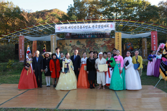 제5회 대한민국동부민요전국경창대회가 성황리에 막을 내렸다. 올해의 대회장기를 거머쥔 명창부 종합대상 수상자는 김해시에서 출전한 김덕수씨이다. 그외 수상자 명단을 아래와 같다.