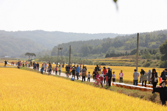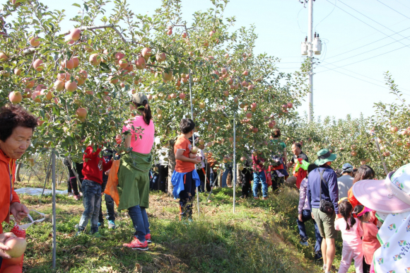 의성 모흥황토마을 메뚜기잡기 및 사과따기 체험행사 개최