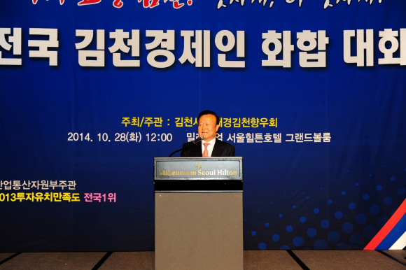 28(화) 12시 밀레니엄 서울힐튼호텔(서울시 중구 소재)에서 박보생 김천시장, 이철우 국회의원, 이홍기 재경김천향우회장 등과 김천출신 전국 경제인 및 향우회원 270여명이 참여한 가운데 ‘전국 김천경제인 화합대회’가 개최되었다.