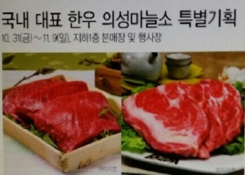 의성군은 농민들이 정성들여 사육한 “마늘소”를 31일부터 11월 9일 까지(10일간) 전국 롯데백화점(30개 매장)에서 동시 판매에 들어가게 되었다.