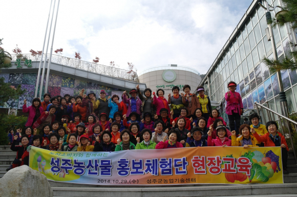 |  | | | ⓒ GBN 경북방송 | | 성주군농업기술센터에서는 29일 도시소비자 80명을 초청, 성주농산물 체험 홍보행사를 실시해“다. 대구시종합복지관 여성대학 동문회 (회장 최영숙) 회원들로 구성된 도시소비자들은 가천면 법전리 별고을사과농장 (농장주 홍두영)에서 사과따기 체험을 하였고 농장에서 생산된 오미자로 가공한 오미자 음료수를 시음하였다. 농장체험을 한 회원들은 농산물을 생산현장에서 직접 맛 보고 체험하면서 성주 농산물이 질이 좋고 우수하며, 농장주와 대화를 통해 생산자의 마음을 담아 농산물이 생산되고 있으며, 물 좋고 공기 좋은 청정지역에서 생산되는 농산물에 감탄하면서 성주 농산물을 적극적으로 구매하고 홍보하겠다고 입을 모았다.