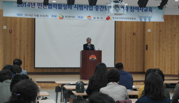 김천시와 한국보건복지인력개발원이 주관한 이번 교육은 민·관의 역할 이해에 관한 한국보건사회연구원 김승권 박사의 특강과 민관협력활성화 시범사업을 수행하고 있는 아포읍과 자산동의 추진성과 보고 및 김미경 강사의 시범지역 민관협력 운영에 대한 슈퍼비전 제공 순으로 진행되어 참여자들의 역량을 강화할 수 있는 기회가 됐다.