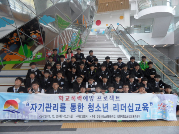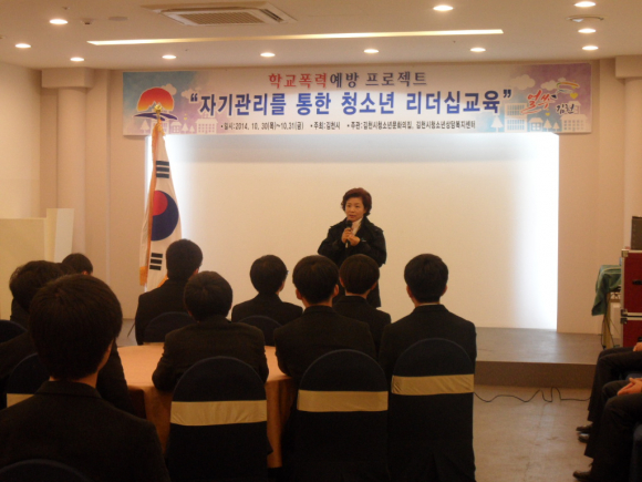 |  | | | ⓒ GBN 경북방송 | | 김천시(시장 박보생)는 학교폭력을 예방하고 건전한 청소년 문화 육성에 기여하기 위해 김천시청소년문화의집, 김천시청소년상담복지센터와 공동 주관하고 김천경찰서, 김천중학교와 연계하여 학교폭력예방 프로젝트 “자기관리를 통한 청소년 리더십 교육”을 지난 10월 30일, 31일 이틀에 걸쳐 김천파크호텔과 녹색미래과학관 등지에서 실시했다.