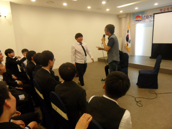 첫째 날은 자기관리 프로그램과 학교폭력 관련 심리극(Socio Drama)을 체험해보는 일정으로 진행됐다. 자기관리 프로그램의 첫 번째 주제는 “세상을 보는 눈. 다른 생각, 다른 관점”이었다. 청소년들이 생각의 틀을 깨고 세상과 나를 긍정적으로 바라보는 사고의 전환을 통해 부정적인 것으로 가득 찬 마이너스 감정을 해소시키는 방법을 배우는 시간이었다.