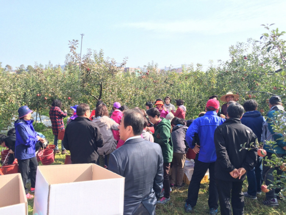 이날 행사에는 삼성2동 나승일동장을 비롯하여 통장, 사회봉사단체장, 주민 등 42명이 사과따기 체험, 인삼시장, 인견판매장을 방문하여 총 350만원의 농특산물을 구매했다.