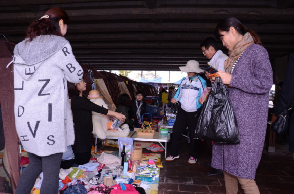 |  | | | ⓒ GBN 경북방송 | | 영천시새마을부녀회(회장 이춘자)는 지난 1일 각 가정에서 사용하지 않는 물품들을 갖고 나와 직접 판매하는 “영천시민 사랑나눔 새마을알뜰장터”를 영천강변공원에서 열었다. 이날 궂은 날씨에도 불구하고 오전 10시부터 진행된 행사는 많은 시민들의 발길로 북적였고, 재활용품 판매를 비롯하여 손거울만들기, 네일아트체험부스, 도서교환시장, 먹거리장터, 거리공연 등 다채로운 부대행사도 마련되었다.