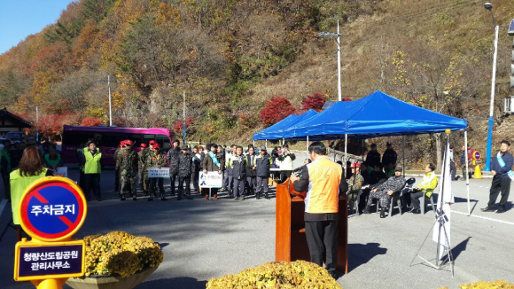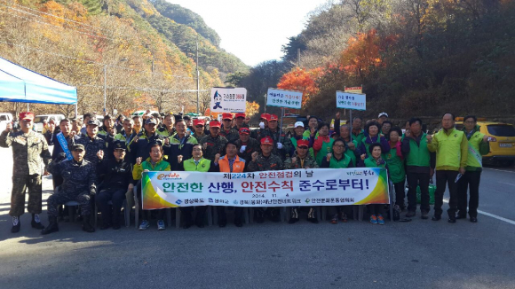 봉화군(군수 박노욱)은 단풍철을 맞아 4일 도립공원 청량산에서 가을 행락철 산악안전사고 예방캠페인을 가졌다.