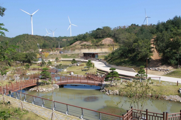 |  | | | ⓒ GBN 경북방송 | | 8일 영덕군 창포 풍력발전단지 일대에서는 색색깔의 단풍이 곱게 물들어 만추(晩秋)의 정취가 무르익은 가운데 오후 4시20분부터 6시40분까지 2시간여에 걸쳐 영덕군 산림생태문화체험공원 준공 홍보행사와 영덕블루로드 11월 달맞이여행, 영덕해맞이예술관 개관 기념행사가 잇따라 개최되어 올해 마지막 개최되는 달맞이여행 체험객들과 함께 새로운 문화체험의 장을 열게 된다. 1997년 이 지역에서 발생한 대형 산불 피해지를 동해안 종합개발사업과 연계, 산과 바다, 바람이 어우러진 천혜의 영덕 자연환경을 체류하며 체험할 수 있는 사계절 산림휴양명소로 조성된 영덕군 산림생태문화체험공원은 지난 2008년부터 총사업비 345억원을 투자해 총면적 104ha의 규모로 조성되어 지난 9월에 준공을 하게 되었다.