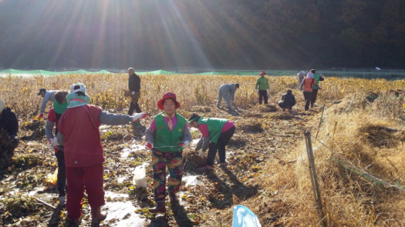 이날 콩수확을 위해 30여명의 새마을지도자와 부녀회장은 아침 이슬이 막 걷히기 시작하는 9시부터 500평의 밭에서 콩을 수확하였고, 수확한 콩은 판매하여 수익금을 연말에 지례면 관내 소년소녀가장, 독거노인 등 어려운 이웃을 도울 예정이다.