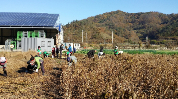 김천시 지례면새마을협의회(회장 배병휘, 송쌍임)는 11월 5일 관내 도곡리 휴경농지에 심은 콩을 수확했다.
