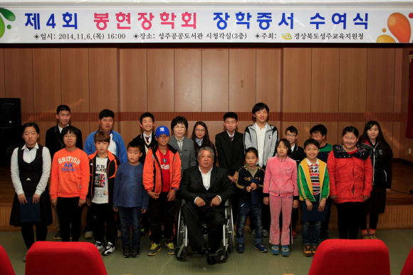 경상북도성주교육지원청(교육장 윤병택)은 6일(목) 경상북도립성주공공도서관 시청각실(3층)에서 제4회 봉현장학생 장학증서 수여식을 가졌다.
