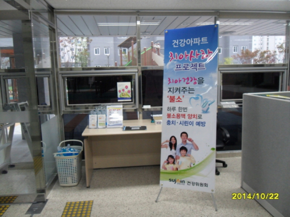 포항시 북구보건소는 두 아파트 관리실의 요청에 따라 관리실 입구에 불소양치용액을 비치했다.