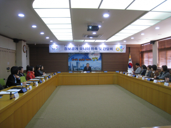 영천시(시장 김영석)는 11일 시청영상회의실에서 정부3.0 투명한 시정 구현을 위한 「정보공개 모니터 위촉 및 간담회」를 개최했다. 간담회에서는 정보공개제도 안내, 영천시의 사전정보공표 현황, 정보공개모니터의 역할 등에 대한 설명이 이루어졌다.