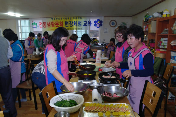 한개마을의 천연고택과 유래에 대한 교육과 함께 천연염색 체험교육을 통해 우리 주변에서 쉽게 구할 수 있는 재료를 이용하여 옷감에 염색을 하여 봄으로써 옛 조상들의 지혜를 배울 수 있었으며, 세종대왕자태실 탐방과 더불어 지역의 고찰 선석사에서는 도토리묵구이, 연근삼색전, 표고버섯밥 등 10여가지 사찰음식을 직접 만들어 보는 실습교육을 실시하였으며, 이를통해 회원간 정보교환 및 다문화가정 회원들과의 다양한 의사소통을 통하여 새로운 조직문화 융성하는데 도움을 주었다.