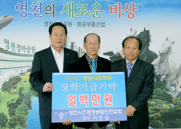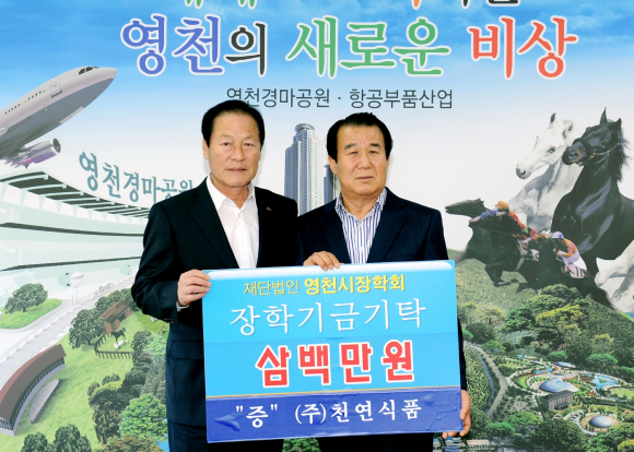 지난 12일 (주)천연식품(대표 임경만)에서 3백만원, 영천시친환경농업단체협의회 이찬실 회장이 1백만원의 장학기금을 재단법인 영천시장학회에 기탁했다.