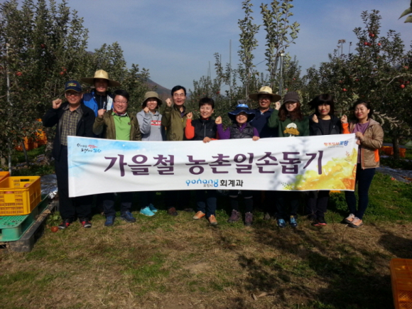 <회계과> 포항시 회계과는 11일 가을철 농번기 일손 부족으로 어려움을 겪고 있는 기북면 용기리 과수 농가를 찾아 사과 수확 및 선별작업 등 농촌일손돕기를 실시했다. 포항시 이계영 회계과장은 “일손부족으로 시름하고 있는 농가에 조금이라도 도움이 되기 위해 매년 농촌일손돕기 활동을 펼치겠다”고 말했다.