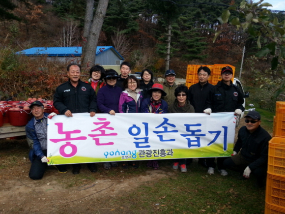 <관광진흥과> 포항시 관광진흥과는 12일 죽장면 두마리 사과재배 농가를 찾아 사과수확 및 환경정화활동 등 가을철 농촌일손돕기 활동을 실시했다. 특히 이날은 문화관광해설사가 함께 참여해 의미를 더했다.