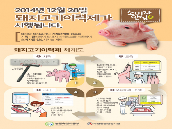 돼지고기 이력제는 ‘가축 및 이력관리에 관한 법률’이 기존 시행 적용대상을 소고기뿐만 아니라 국내산 돼지고기까지 확대하고 향후 닭, 계란 등까지 확대하기 위해 개정됨에 따른 것이다.