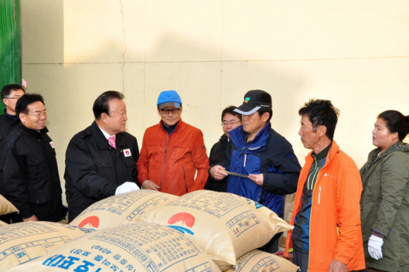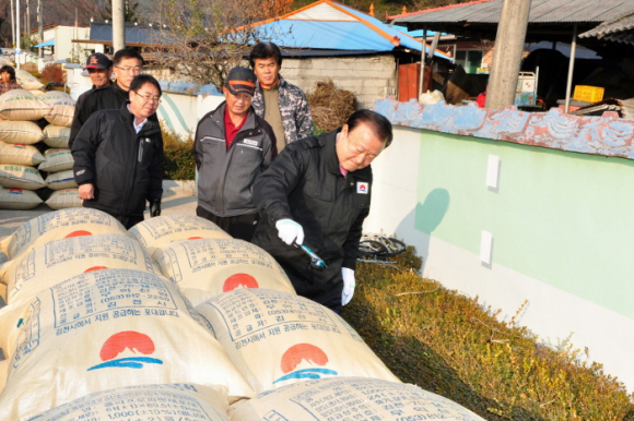 박보생 김천시장은 지난 14일 공공비축미곡 포대벼(40kg) 첫 매입현장인 구성면 송죽창고를 찾아 어려운 여건 속에서도 1년간 땀 흘려 풍년농사를 달성한 농민들의 노고를 격려하고 민생현장을 살폈다.