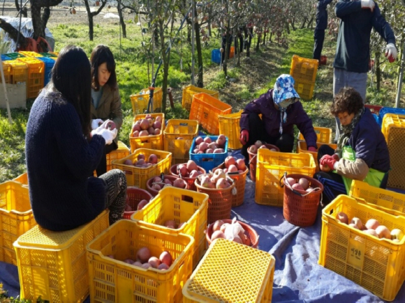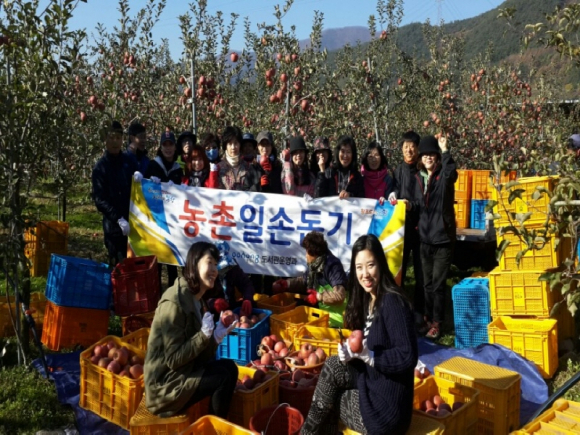 포항시평생학습원 도서관운영과는 18일 북구 기북면 오덕2리 한 과수농가를 방문해 사과수확 등 농촌일손돕기 봉사활동을 펼쳤다.