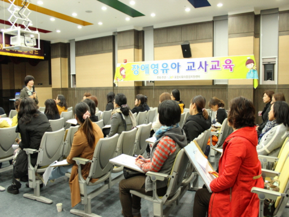 이번 교육은 최근 어린이집을 이용하는 장애아동이 증가하고 있는 가운데 ‘장애인등에 대한 특수교육법’과 ‘장애아동복지지원법’에 의거 보육시설에서도 장애아동 의무교육이 실시됨에 따라 양질의 장애아 통합보육 체계를 구축하기 위해 마련됐다.