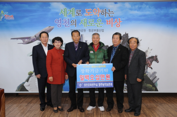 이와 때를 맞춰 영천문화원 부설 명주농악보존회(회장 박재천)에서는 지난 5일 농림축산식품부가 주최하고 국악방송이 주관한 ‘2014 전국 농업인 두레 풍물경연대회’에서 경북대표로 출전, 은상을 수상하며 받은 상금 150만원을 장학기금으로 기탁했다. 북안면 명주리에서 전승된 전통 풍물놀이인 명주농악은 지난 1994년 ‘제35회 전국민속예술경연대회’에서 최우수상을 수상한바 있으며, 마을주민들의 고령화로 2011년 전수받은 명주농악보존회는 이번이 첫 전국대회 출전이었다.