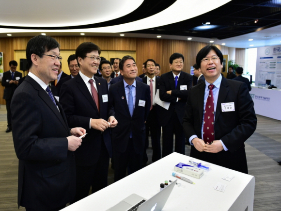 |  | | | ↑↑ 25일 대기업-중소·벤처기업 창조경제협력’을 위한 협약식을 마치고, 제8회 아이디어 마켓플레이스 행사에서 의약품 벤처기업인 화이바이오메드의 시제품 전시관을 둘러보고 있다.(사진왼쪽부터 권오준 포스코 회장, 최양희 미래창조과학부 장관, 남민우 벤처기업협회장) | | ⓒ GBN 경북방송 | | |