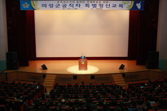 |  | | | ⓒ GBN 경북방송 | | 의성군(군수 김주수)은 최근 근무시간 중 무단이석 등으로 불미스런 사례가 발생됨에 따라 「공직사회의 무사안일은 용납할 수 없다」는 군수의 강력한 의지를 천명함에 따라 25일 산하 전 공직자를 대상으로 특별 정신교육을 했다. 이 자리에서 김군수는 「 8백여 공직자가 의성의 백년대계(百年大計) 를 위한일자리 창출 등을 위해 혼신의 노력을 기울여 나가고, 이를 뒷받침하기 위한 조직개편 등 산적한 현안이 많은 중요한 시기이니 만큼 산하 전 공직자 모두가 한 마음 한 뜻이 되어 군민을 섬기고 희망 군정을 펼쳐 나가는데, 최선을 다해 달라」고 당부하고,