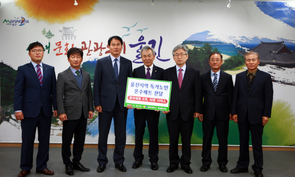 울진영덕세정위원회(회장 황재길)는 지난 26일 온수전기매트 5개와 라면 15박스(130만원 상당)를 울진군(군수 임광원)에 전달했다.