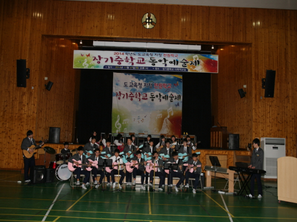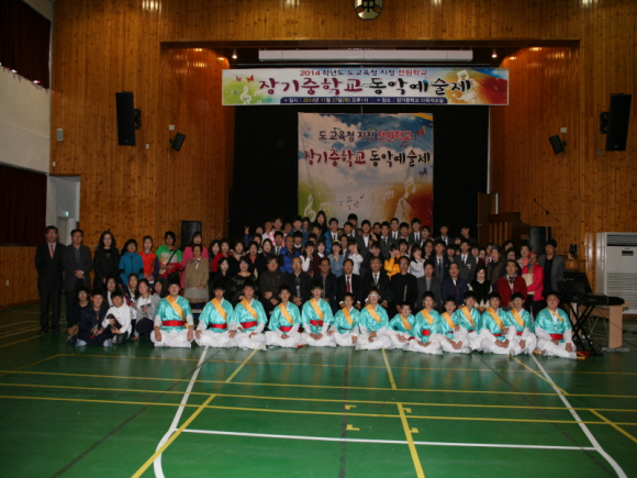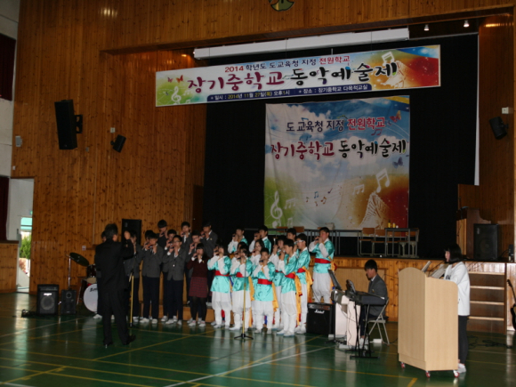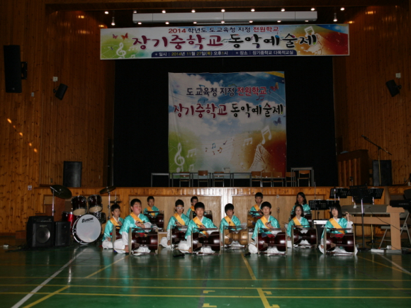 경상북도 도교육청 지정 전원학교인 장기중학교(교장 허두영)는 11.27(목) ‘장기중학교 학생활동 발표회’를 실시했다. 이번 발표회는 2013학년도부터 도교육청 전원학교로 지정된 이후, 2년 동안 전원학교 육성사업 프로그램에 따른 세부 사업 계획의 하나였던 특기적성 계발 프로그램이 바탕이 되었다. 장기중학교가 실시한 특기적성 계발프로그램은 사물놀이반, 방송댄스반, 기타반을 주축으로 이루어져 있는데, 이번 무대에서 그간의 동아리 활동에서 배운 것들을 마음껏 발휘하는 시간을 가졌다.