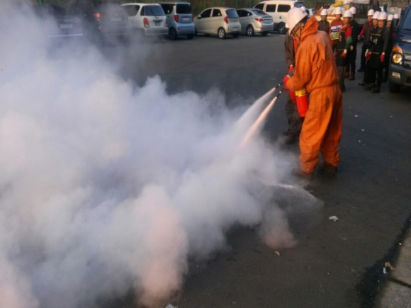 이날은 캔압축기에서 철캔류를 압축하던 도중 부탄가스 폭발로 인해 발생한 화재가 공장 전체로 옮겨 가는 가상 상황을 설정해 인명대피유도, 주요물품 반출 및 자체 소화시설을 이용해 화재진압 대응능력을 향상시키는 훈련을 진행했다.