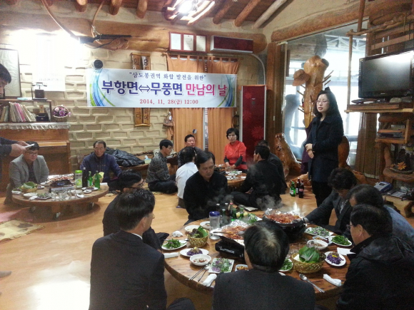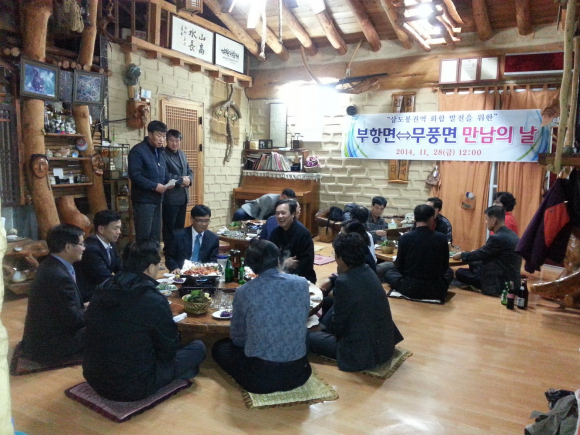 삼도봉을 매개로 인접하여 인적 왕래가 활발한 김천시 부항면(면장 나혜란)과 무주군 무풍면(면장 강창수) 만남의 날 행사가 11월 28일 부항면 어전리 소재 지퍼식당에서 개최됐다.