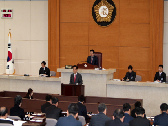 이강덕 포항시장이 1일 제216회 포항시의회 제2차 정례회에서 2015년도 예산(안)을 제출하고 심의를 요청하면서, 시정연설을 통해 내년도 시정 운영방향을 밝혔다.