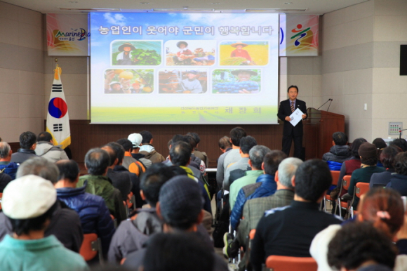 지난 11월 27일 관내농업인 120명을 대상으로 경상북도농업기술원 채장희 원장(농학박사)을 초빙하여 “농업인이 웃어야 군민이 행복합니다”라는 주제로 첫 교육을 시작하였다