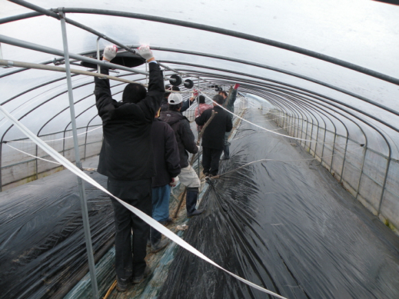 |  | | | ⓒ GBN 경북방송 | | 대가면장(이병식)을 비롯한 면사무소 공무원 7명과 농협직원 5명, 마을주민 20여명은 1일(월) 오후 4시경 강풍으로 인해 비닐하우스 5동의 피해를 입은 대가면 옥성리 이수남씨의 농장에 긴급 출동하여 피해복구 작업에 구슬땀을 흘렸다.