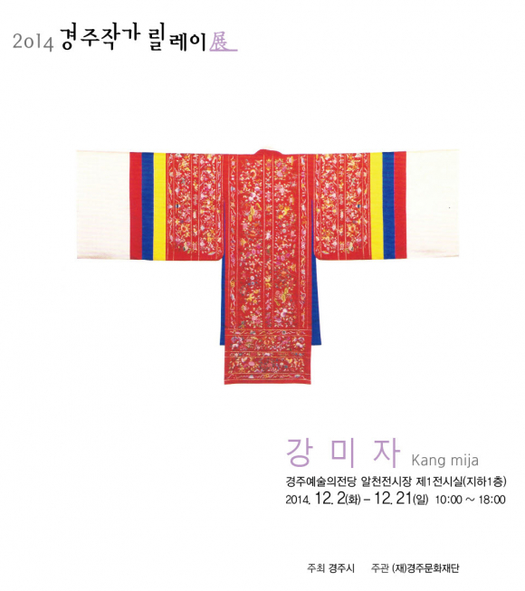 (재)경주문화재단(이사장 최양식)은 ‘2014 경주작가 릴레이展’의 마지막 주자인 강미자 작가의 전시를 12월 2일(화) 경주예술의전당 알천전시장(B1)에서 오픈했다고 밝혔다. (재)경주문화재단(이사장 최양식)은 ‘2014 경주작가 릴레이展’의 마지막 주자인 강미자 작가의 전시를 12월 2일(화) 경주예술의전당 알천전시장(B1)에서 오픈했다고 밝혔다. 전통복식을 재현하는 강미자 작가는 최근 간소화되어가는 복식을 보면서, 수백 년을 돌아가 풍성하고 화려하지만 간결했던 삶을 보여주는 옛 복식들을 재현해서 잊혀져가는 전통의 맥을 이어가고 싶다고 한다. 그래서 이번 전시에는 궁중의상과 함께 일반 사대부, 서민들이 즐겨 입었던 출토 복식 등을 재현해 선보인다. 강미자 작가와의 만남은 12월 10일(수) 오후 4시에 알천전시장에서 무료로 진행된다. ‘경주작가 릴레이展’은 지역 예술가들의 창작의욕을 고취시키고, 전시활동공간을 제공하고자 작년에 처음 기획된 전시다. ‘2014 경주작가 릴레이展’은 강미자 작가를 끝으로 막을 내리고, 내년 3월부터 ‘2015 경주작가 릴레이전’이 새로 시작된다. 강미자 작가의 전시는 12월 21일(일)까지 오전 10시부터 오후 6시까지 운영하며, 매주 월요일은 휴관이다. (입장료는 무료, 문의 1588-4925) |