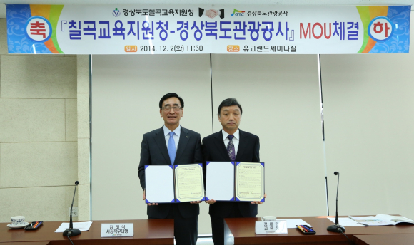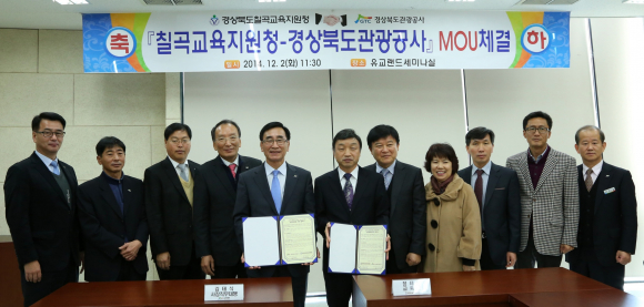 경상북도관광공사(사장직무대행 김태식)와 칠곡교육지원청(교육장 정세원)은 2일 학생 인성함양 및 각종 정보 및 프로그램 상호교류를 위한 업무협약을 안동 유교랜드에서 체결했다.