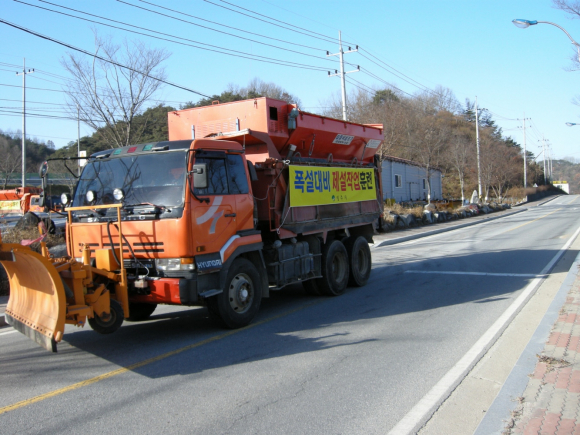 훈련상황은 염수용액 교반기와 염수용액살포장치 6대 및 시보유덤프 2대, 임차덤프 2대, 더블캡 제설기 3대를 이용하여 기상청 폭설 예비특보 발령에 의거 계획된 노선으로 강설 전 염수용액과 소금을 사전 살포하는 방식으로 보다 깨끗한 시가지가 유지되는 제설작업 훈련으로 이루어졌다.