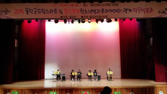 울진군(군수 임광원)은 청소년 수련관에서 지난 3일 2014 희망나눔과 드림스타트와 방과후아카데미가 연계한 꿈과 끼를 키우는 ‘작은 발표회 및 전시회’를 가졌다.