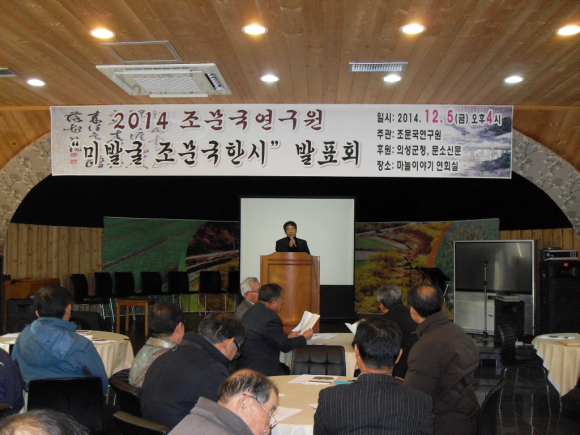 조문국연구원은 지난 5일 의성읍에 위치한 마늘이야기 식당 연회장에서, 조문국과 관련된 미발굴 한시(漢詩) 발표회를 가졌다. 이날 한국국학진흥원의 임노직 박사는 잘 알려지지 않은 한시(漢詩) 20편을 발굴하여, 직접 한글로 해석하여 발표를 했다. 임박사는 조문국의 연구가 문헌사적 연구 및 발굴 연구도 중요하지만, 알려지지 않고 문집 속에 한자로만 되어 있는 선조들의 우수한 한시를 한글로 번역하여 발표하는 것은 조문국 관련 스토리텔링에도 많은 도움이 될 것이라고 한다. 김주수 군수도 발표회 2부에 참석하여 축사를 했다. 김군수는 아직까지 조문국에 대해서 타지역 사람들은 잘 모르고 있지만, 조문국을 연구하시는 분들이 왕성한 활동을 하여 의성 조문국을 많이 알려 달라고 당부했다. |
