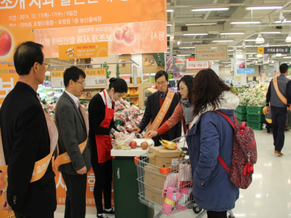 한편 포항시는 생산자협동조합 등 개별 조직들을 통합해 포항시연합유통사업단을 발족하고 지역 농산물의 유통을 일원화했으며 이마트와 롯데마트, 농협하나로클럽, 리플러스 등 대형 유통업체에 우리 지역 농산물을 직거래로 납품 해왔다.
