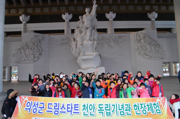 의성군(김주수 의성군수)은 지난 13일 드림스타트 아동 70여명을 대상으로 「대한독립! 나라사랑」을 주제로 충남 천안에 위치한 독립기념관을 견학 했다. 이번 체험은 2014년도 드림스타트 프로그램에 적극 참여한 우수 아동들을 대상으로 평소 현장학습 기회가 적었던 드림스타트 아동들에게 독립기념관을 직접 방문함으로써 대한민국 역사의 현장을 직접 보고 체험할 수 있는 기회로서 아동들에게는 멋진 역사 문화 체험의 장이 마련되었다.
